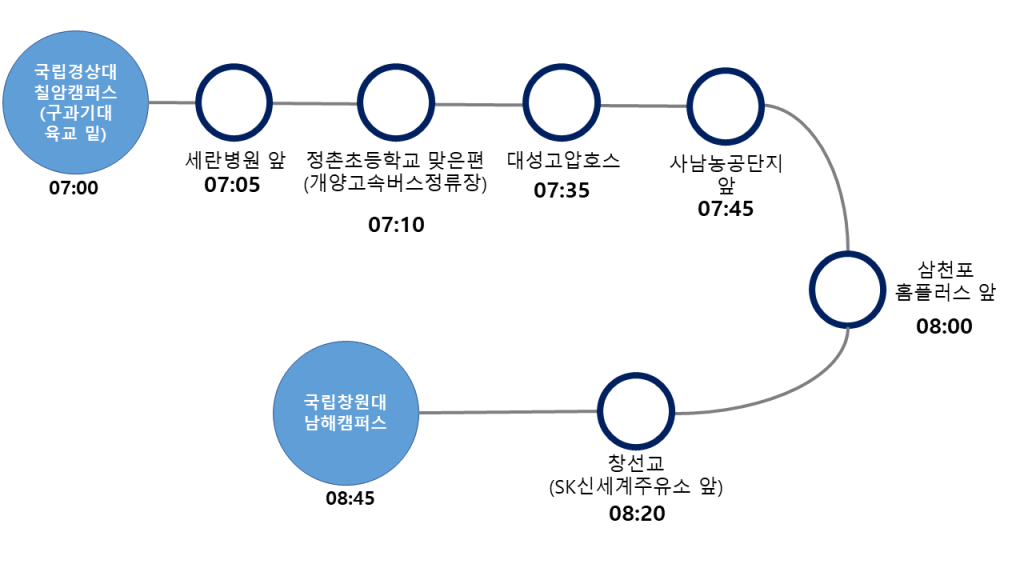 * 정시에 운행하나 도로 상황에 따라 정류장에 2~5분 가량 늦어질 수 있습니다.